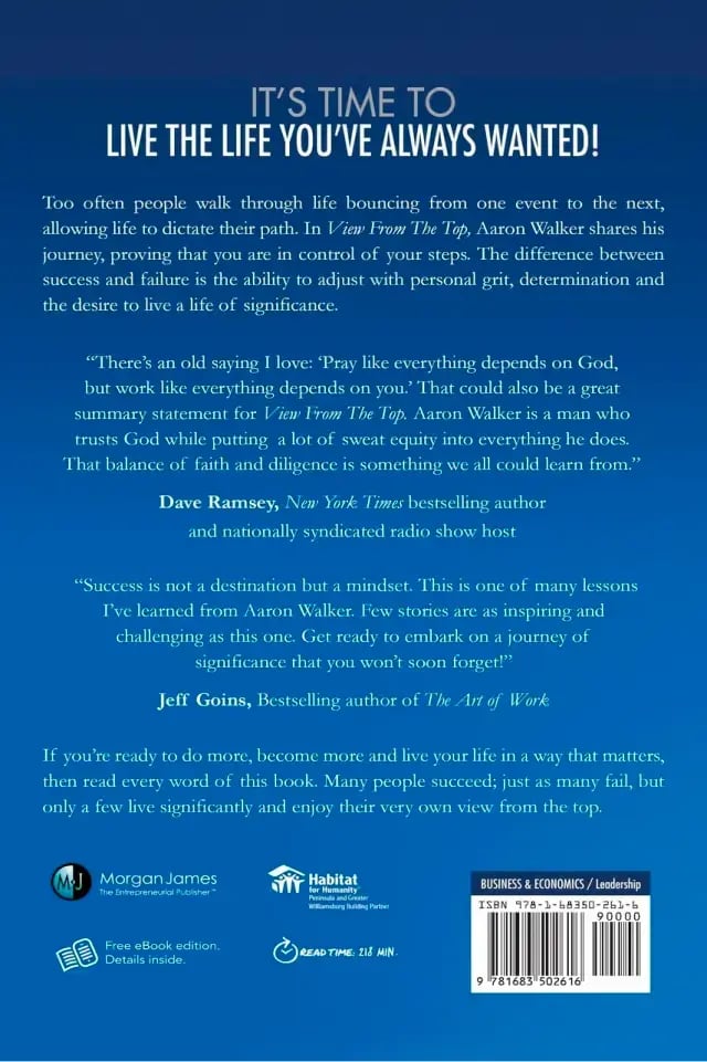 Passion and Purpose are two words that will drive you to new heights and allow you to experience life and people like never before. In his book, View From The Top author Aaron Walker helps ordinary men, like me, become extraordinary by Living of Life of Significance. I was an ordinary man, doing ordinary things, that is January of 2017 when I purchased View From The Top.